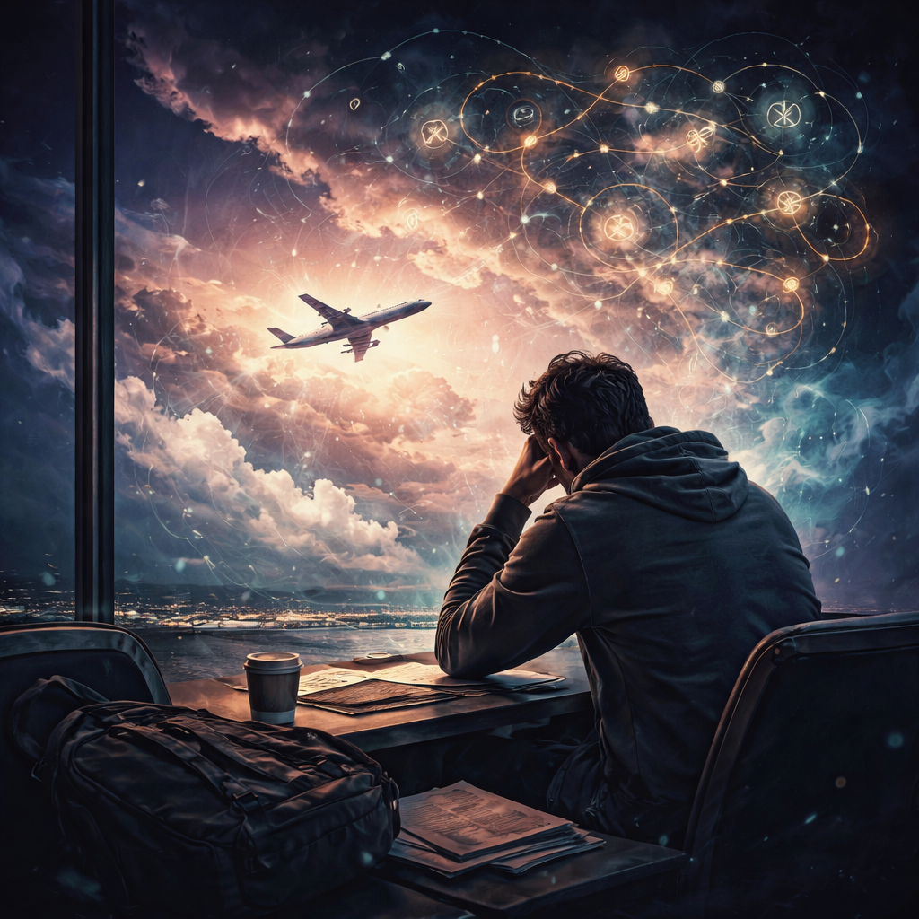 Během přestupu jsem měl splín. Všechno je špatně. Proč všechno dělám. Kam vůbec směřuji. Bylo to trpké čekání na další let. Hlavou se mi honilo nespočet myšlenek. Od samotného bytí, rodiny, práce, projektech až po vyčerpání.