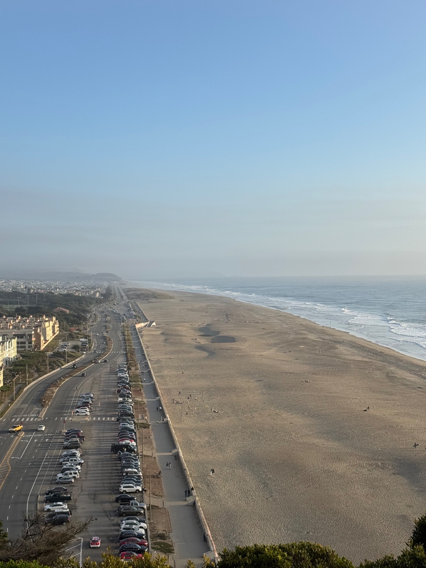 Z Kernville se vracíme zpět do San Franciska. Hotel máme kousek od pláže a tak se ještě naposledy jdeme projít na pláž. Atmosféra je dokonalá. Z jedné strany je krásné světlo, protkané paprsky slunce a z druhé strany se díky kondenzaci tvoří opar, který dokresluje celý pohled. Nakonec nachodíme asi 7 km a dojdeme na vyhlídku, ze které je vidět na Golden Gate. Večer si skočíme jen do 7 Eleven pro snack a jdeme spát.